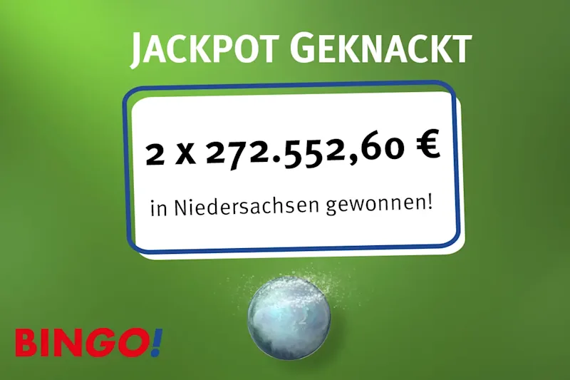 Drei Reihen auf ihren BINGO!-Losen stimmten am Sonntag, dem 20. Oktober 2024, gleich bei zwei niedersächsischen Spielteilnehmern mit den gezogenen Gewinnzahlen der Umweltlotterie überein. Mit diesem dreifach BINGO! erhalten die beiden in der Gewinnklasse 1 nun je 272.552,60 €.