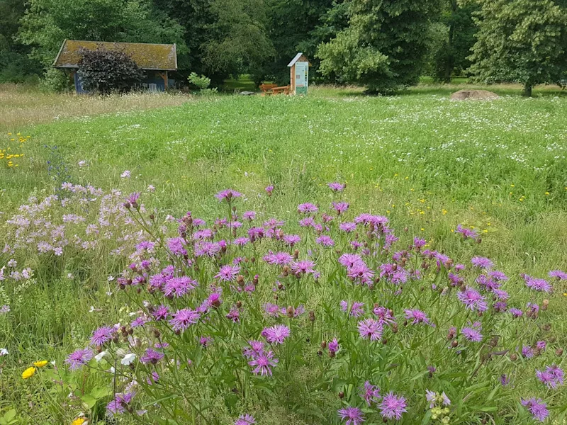 Die verschiedenen, kleinteiligen Lebensräume von Hummeln sind durch Informationstafeln gekennzeichnet, die neben leicht verständlichen Informationen zu Wildbienen auch Hinweise zur Nachahmung im eigenen Garten bieten. Das Vorhaben wurde durch Ehrenamtliche geplant und umgesetzt.